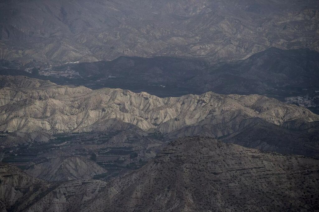 | Une vue aérienne du désert touristique de Tabernas, prise depuis Illar, près d'Almeria, le 11 juillet. |