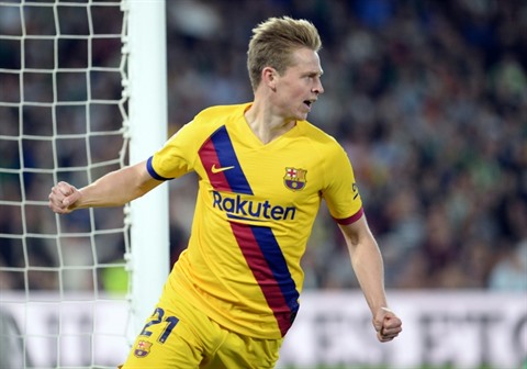 | Le milieu néerlandais du Barça Frenkie De Jong buteur sur le terrain du Real Betis, le 9 février à Séville. |