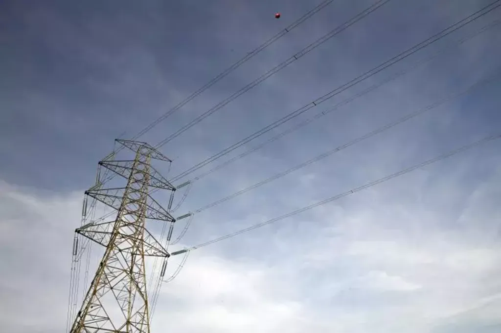| Des pylônes haute tension transportant l'électricité de l'Espagne au Portugal près de la frontière, à Lindoso, au Portugal, le 28 avril. |