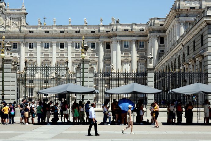 | Des touristes à Barcelone, en Espagne, le 18 juillet 2023. |