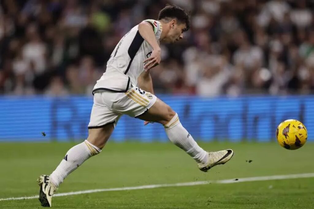 | Brahim Diaz ouvre la marque pour le Real contre l'Atletico dans le sommet de la Liga entre les deux clubs de Madrid, le 4 février au stade Santiago Bernabeu. |