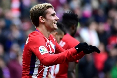 | L'attaquant français de l'Atlético Madrid, Antoine Griezmann, après son but face à Gérone, en Liga, au Wanda Metropolitano de Madrid, le 20 janvier |