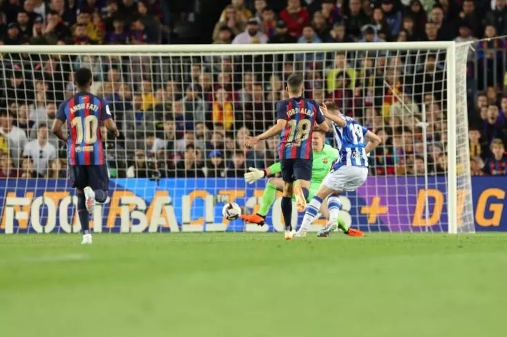 Les Blaugranas ont encaissé le premier but très tôt, sur une perte de balle de Jules Koundé qui a permis à Alexander Sorloth de partir en contre et de servir Mikel Merino (5e). Le Norvégien a ensuite lui-même conclu un contre généré par Martin Zubimendi (72e) pour sceller le 2-0 qui rapproche les Basques (actuels 4es) de la Ligue des champions.