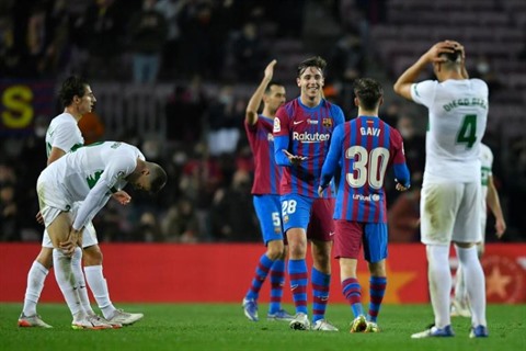 Les Catalans ont ouvert la marque en début de partie grâce à deux buts de leurs jeunes, par Ferran Jutgla de la tête sur corner (16e), puis par le jeune international espagnol Gavi, sur un but façon Lionel Messi (19e). Mais Elche a égalisé en trois minutes au retour des vestiaires grâce à une frappe puissante de ses remplaçants Tete Morente (61e) et Pere Milla (63e), entrés quelques minutes plus tôt.