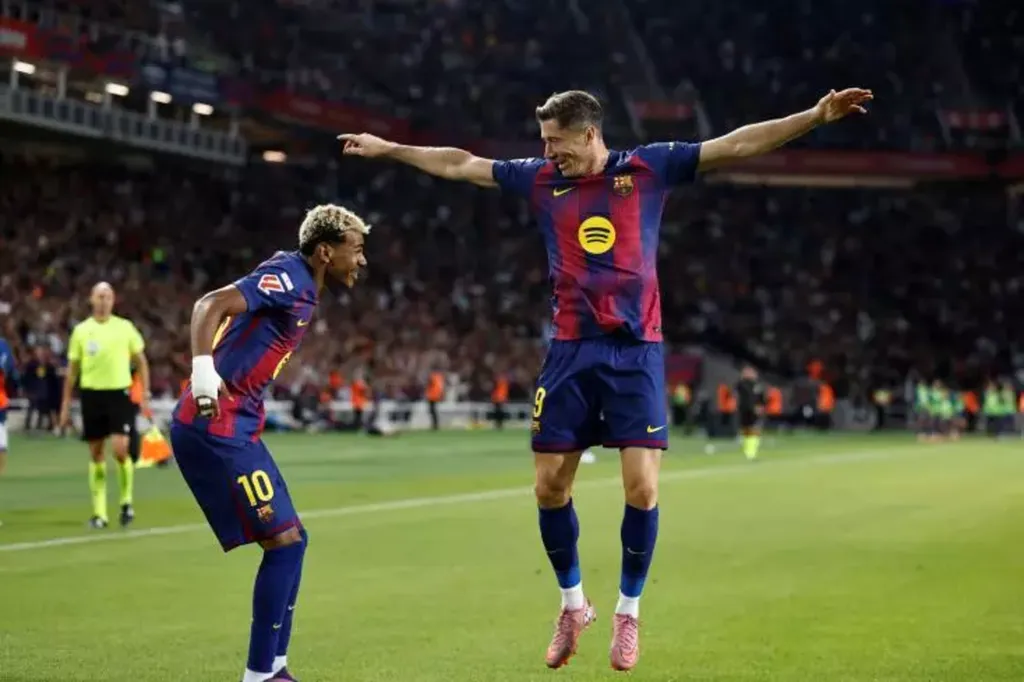 | Lamine Yamal (gauche) et Robert Lewandowski lors de la victoire du Barça le 28 septembre (2-1) face à la Real Sociedad. De retour à la compétition, le jeune prodige barcelonais a délivré une passe décisive au buteur polonais quelques minutes à peine après être entré en jeu. |