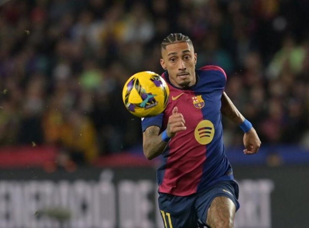 | L'attaquant brésilien du Barça, Raphinha, buteur lors de la victoire écrasante en championnat contre Valence, le 26 janvier à Barcelone. |