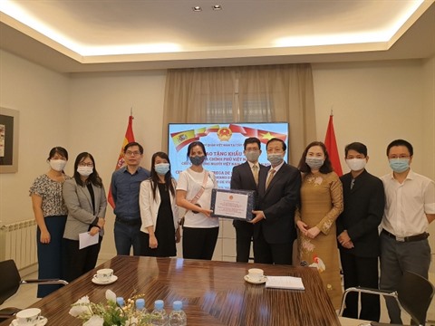 Lors de la remise des masques de protection à la communauté vietnamienne en Espace le 28 mai, l’ambassadeur du Vietnam en Espagne, Hoàng Xuân Hai, a souligné des sentiments et l’attention du gouvernement vietnamien accordés à la communauté des Vietnamiens à l’étranger. L’ambassade du Vietnam en Espagne continuera d’offrir des masques à la communauté vietnamienne vivant dans ce pays, a-t-il fait savoir.