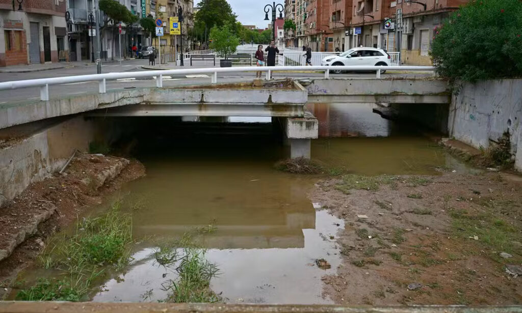 | La ravine de la Saleta, après que de fortes pluies ont fait craindre une répétition des inondations meurtrières qui ont dévasté la région en 2024, à Aldaia (Espagne), le 29 septembre 2025. |