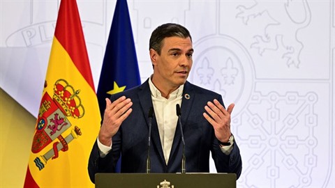 "J'aimerais que vous notiez que je ne porte pas de cravate", a déclaré M. Sánchez, tout sourire, en montrant le col ouvert de sa chemise lors d'une conférence de presse à Madrid.