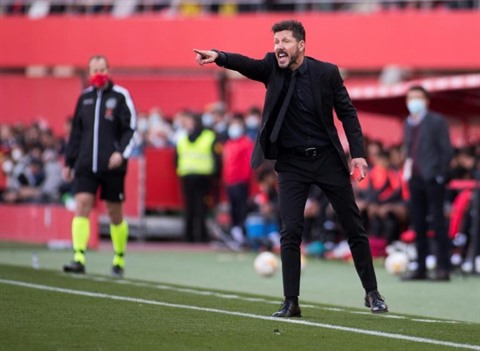 | L'entraîneur argentin de l'Atlético Madrid Diego Simeone, lors de la défaite, 1-0 sur le terrain de Majorque, lors de la 31e journée de LaLiga, le 9 avril. |