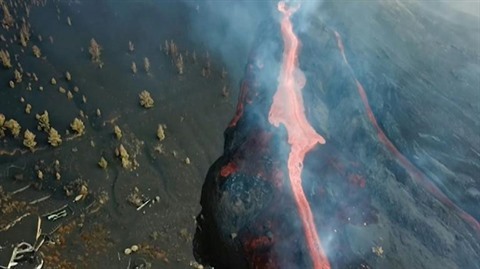 Selon David Calvo, cette coulée, dont la température dépasse 1.100 degrés, avance très lentement et pourrait se jeter dans la mer mardi 19 octobre, ce qui entraînera probablement le confinement des riverains afin d'éviter tout danger. Une première coulée de lave a atteint la mer fin septembre.