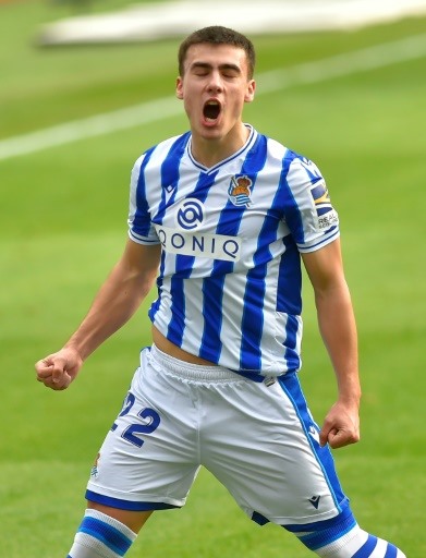 | L'attaquant de la Real Sociedad, Ander Barrenetxea, buteur lors du match de Liga à domicile face à Eibar, le 13 décembre. |