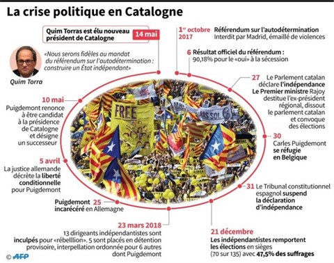 Les relations entre Madrid et Barcelone ont implosé l'automne dernier quand le gouvernement régional de Carles Puigdemont a organisé un référendum illégal d'autodétermination le 1er octobre, marqué par des violences policières, avant que le parlement catalan ne déclare unilatéralement l'indépendance le 27 octobre.