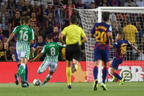 Sous les yeux de Messi, toujours convalescent et présent en tribune au Camp Nou, le Betis s'est permis d'ouvrir le score en contre grâce au Français Fekir (15e). Mais son compatriote Griezmann a égalisé en se jetant (41e) puis il a donné l'avantage au Barça d'un magnifique tir enroulé (50e), justifiant les 120 millions d'euros versés à l'intersaison pour le recruter. Il a aussi délivré une passe décisive à Arturo Vidal (77e).