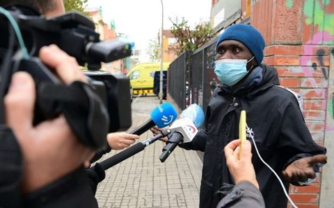 | Le Gambien Issa Samate répond aux questions des journalistes, le 10 décembre à Badalona, près de Barcelone, après un incendie dans un entrepôt où vivaient des migrants. |