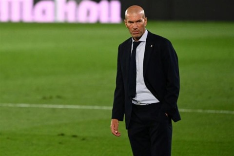 | L'entraîneur français du Real Madrid, Zinédine Zidane, lors d'un match de Liga contre Alaves, à Valdebebas, le 10 juillet 2020. |