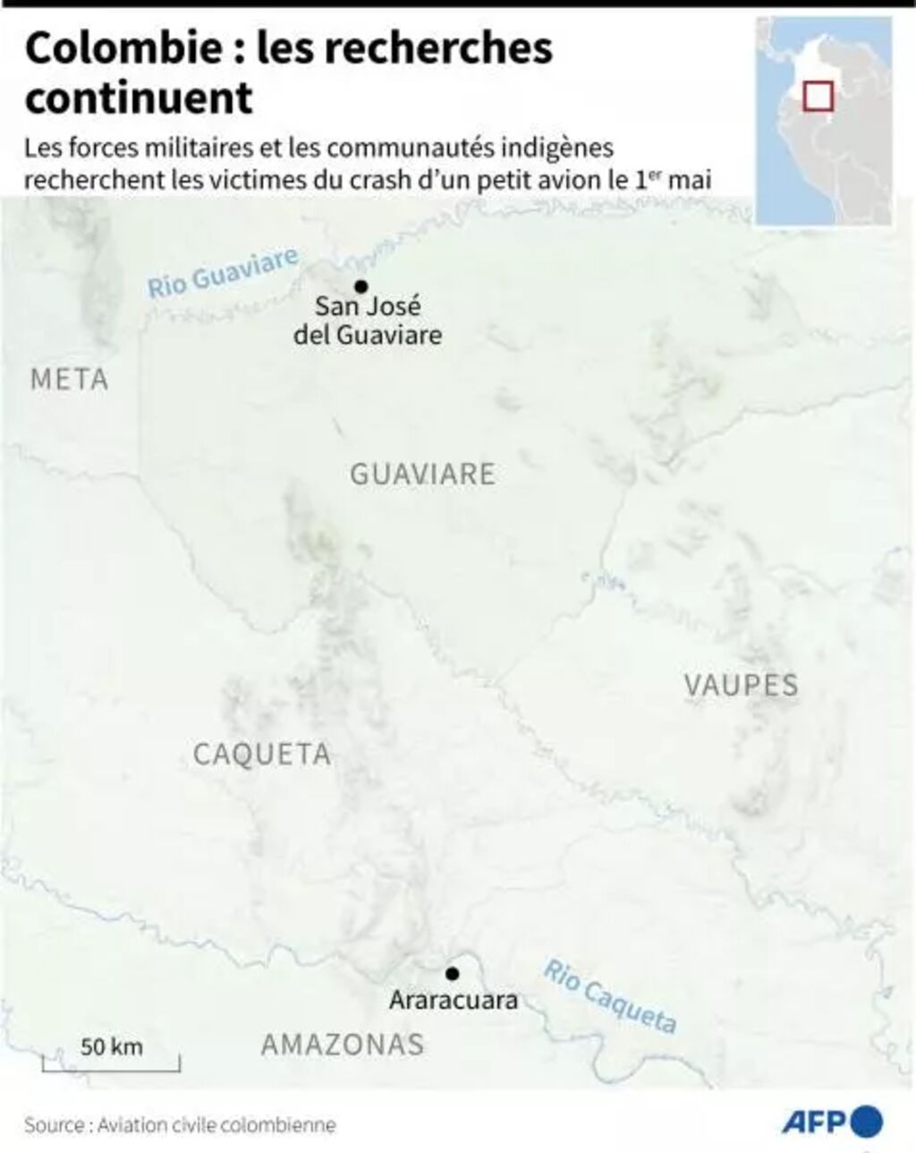 Mais depuis un tweet précipité du président Gustavo Petro le 17 mai, annonçant avant de se rétracter le lendemain que les enfants avaient été retrouvés vivants, plus rien. Les recherches autour de l'épave de l'aéronef couvrent une zone d'environ 323 km2, soit trois fois la superficie de Paris intra-muros.