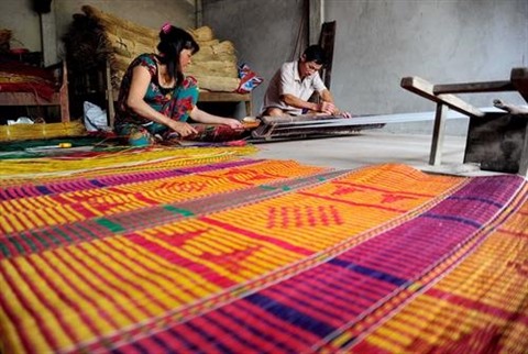 | Le village de tissage de tapis de carex de Hàm Tân, dans le district de Trà Cú, province de Trà Vinh, fonctionne depuis près de 100 ans. |