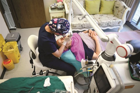 | Traitement dermatologique dans une clinique de chirurgie esthétique de Pékin. |