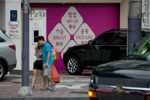 | Entrée d'une clinique de chirurgie esthétique à Séoul. |