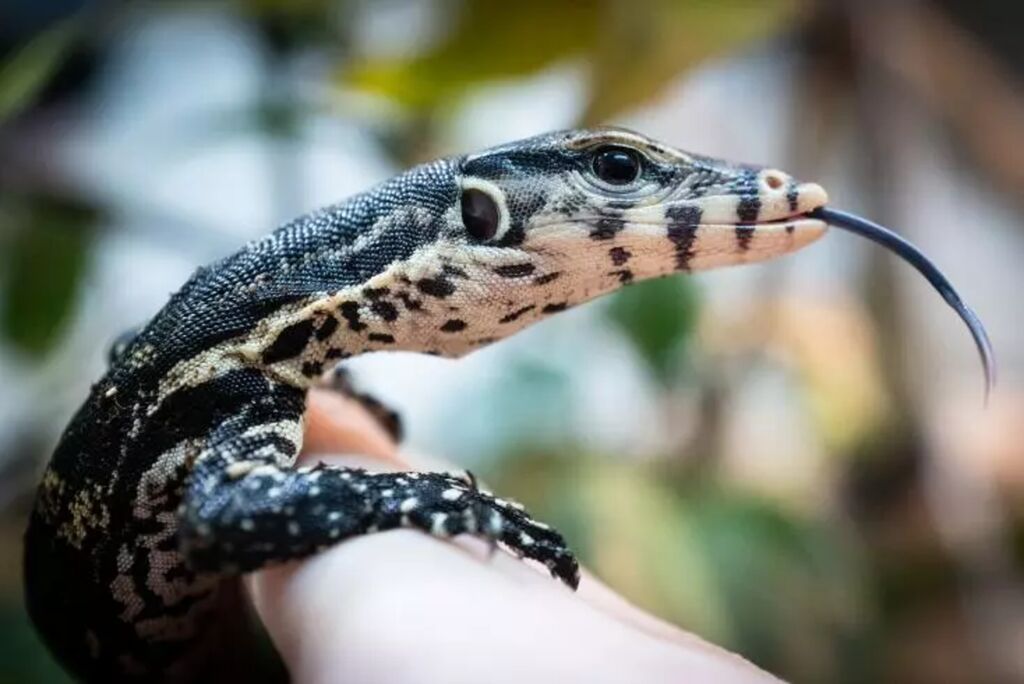 | Un bébé varan malais, quelques jours après sa naissance, au parc zoologique de Padirac, dans le Lot. |