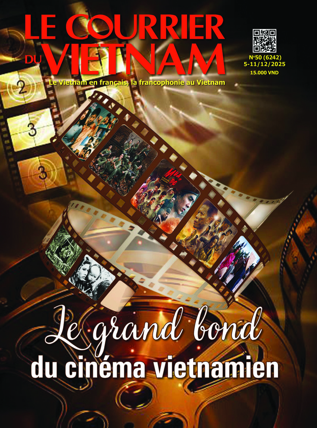 Je n’étais finalement pas si loin du compte, car cette Une était entièrement consacrée au cinéma, illustrée par une très belle pellicule dorée rassemblant plusieurs images de films vietnamiens récents comme Mua do (Pluie rouge) ou Tu chiên trên không (Combat mortel dans le ciel). Ce numéro 50 avait donc une saveur particulière pour les cinéphiles, mais aussi pour tout lecteur curieux de mieux comprendre la vitalité du 7ᵉ art vietnamien.