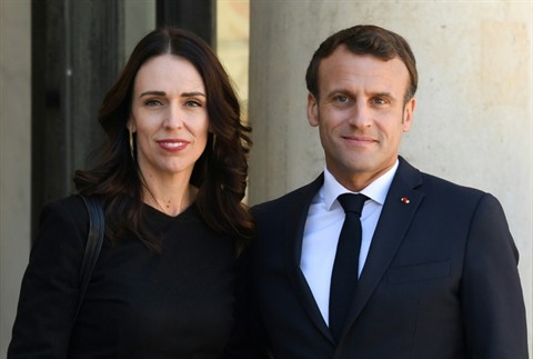 | Le président Emmanuel Macron et la Première ministre néo-zélandaise Jacinda Ardern à l'Élysée, le 15 mai à Paris. |