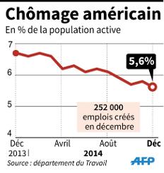 | Évolution du chômage aux États-Unis de décembre 2013 à décembre 2014. |