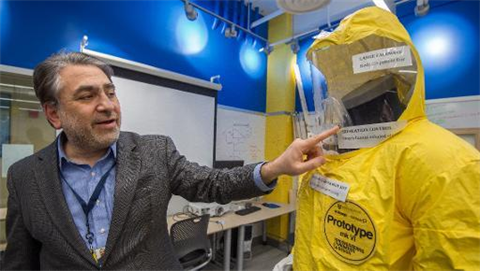 "Je ne dirais pas que c'est une révolution dans ce type de vêtement de protection", dit Youseph Yazdi, directeur du Centre d'Innovation et Design de l'université. "Ce que nous voulons, ce sont des améliorations simples qui peuvent sauver des vies, avoir un impact sur la santé et la sécurité et être disponible rapidement", dit-il en montrant un prototype placé sur un mannequin dans un atelier du Centre.