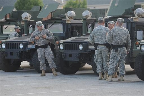 | Les militaires de la Garde nationale déployés, le 18 août à Ferguson |