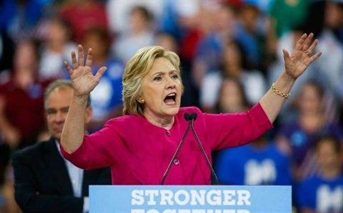 | La candidate démocrate Hillary Clinton s'exprime devant ses partisans, lors d'un meeting à Philadelphie, le 29 juillet. |