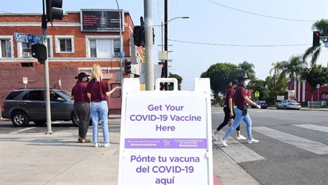 | Un centre de vaccination à Los Angeles, le 17 août. |