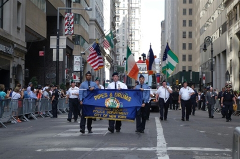| La police new-yorkaise lors d'une cérémonie commémorative du 11 septembre 2001, le 9 septembre 2016. |