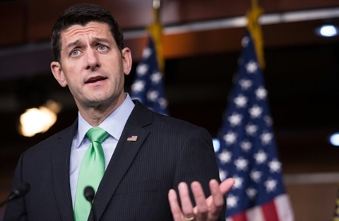| Paul Ryan, président de la Chambre des représentants et haut responsable du parti républicain américain, le 28 avril à Washington. |