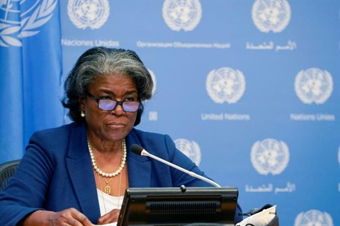 | L'ambassadrice américaine aux Nations unies, Linda Thomas-Greenfield aux Nations-Unies à New York le 1er mars. |