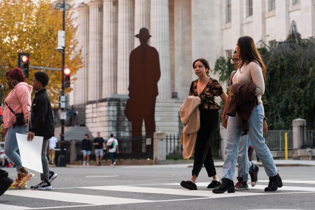 | Des piétons traversent une rue à Washington, D.C., aux États-Unis, le 4 novembre. |