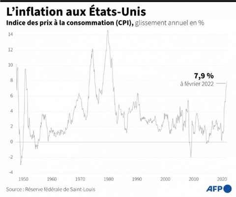 Elle a atteint en février son plus haut niveau depuis 1982, à 6,4% sur un an selon l'indice PCE, privilégié par la Fed, et 7,9% selon un autre indice, le CPI, sur lequel sont notamment indexées les retraites.