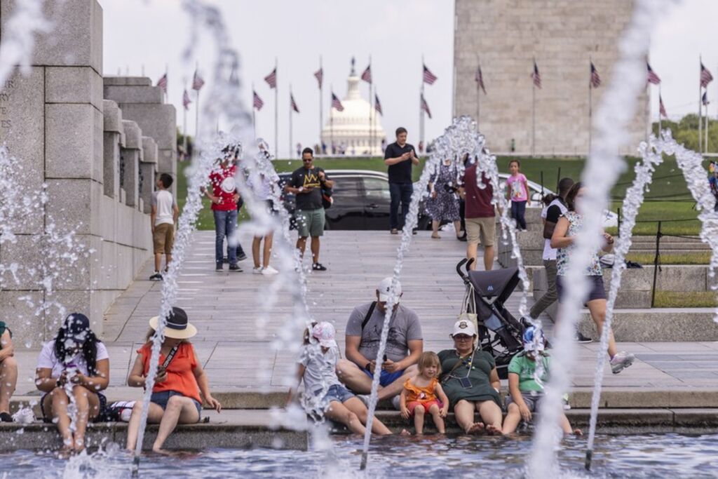 | Des personnes se rafraîchissent près d'une fontaine à Washington, D.C., aux États-Unis, le 11 juillet. |