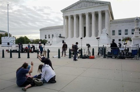 | Des femmes prient devant la Cour suprême des États-Unis à Washington, le 4 octobre 2021. |