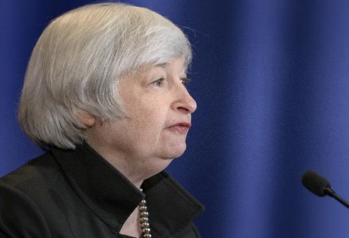 | La présidente de la Fed, Janet Yellen, lors d'une conférence de presse à Washington le 13 novembre. |