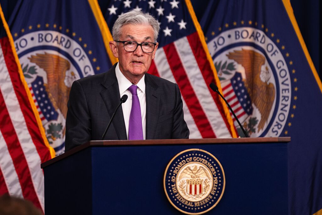 | Jerome Powell, président de la Fed lors de la conférence de presse annonçant la décision de hausse des taux d'intérêt, le 26 juillet à Washington D.C. |