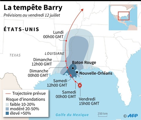 "La température à la surface de l'eau du Golfe du Mexique est au-dessus de la moyenne et fournit au système des forces pour s'intensifier", a expliqué dans le communiqué du GSCC Jill Trepanier, spécialiste des phénomènes climatiques à l'université de Louisiane. Selon elle, Barry est un parfait exemple des conséquences du changement climatique.