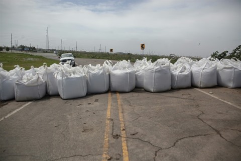 | Des sacs de sable placés sur les routes pour éviter les inondations avant le passage de l'ouragan Barry, le 12 juillet à Venice, en Louisiane. |