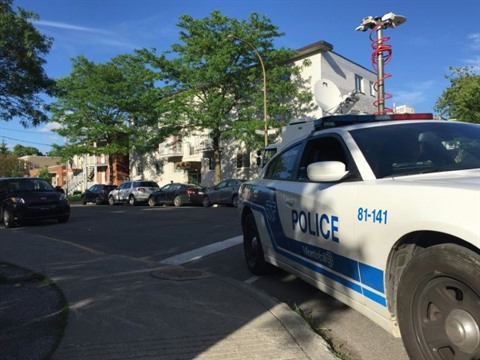 | La police de Montréal le 21 juin près d'un bâtiment où vivait Amor Ftouhi soupçonné d'avoir poignardé un policier à l'aéroport de Michigan. |