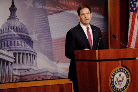 "Le temps est venu pour que notre génération ouvre la voie vers un nouveau siècle américain", a déclaré Marco Rubio, d'origine cubaine, dans la symbolique Freedom Tower, par où transitèrent des milliers d'exilés cubains dans les années 1960.