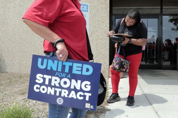 "Les choses évoluent rapidement", a déclaré Shawn Fain, lors de son point hebdomadaire sur les discussions avec Ford, Stellantis et General Motors. J'aimerais pouvoir vous annoncer un accord préliminaire avec un ou plusieurs de ces groupes, mais je veux dire clairement que nous effectuons des progrès importants".