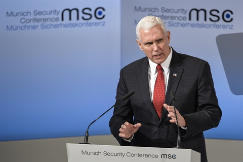 | Le vice-président américain Mike Pence, le 18 février à Munich. |