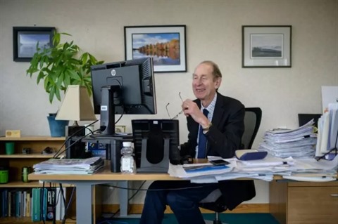 | Le responsable de la Santé au Vermont, Mark Levine, dans son bureau à Burlington, le 28 juin. |