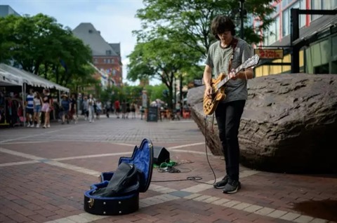 Evan David Warner, musicien de rue à Burlington, est persuadé que le caractère des habitants a joué un rôle-clé.