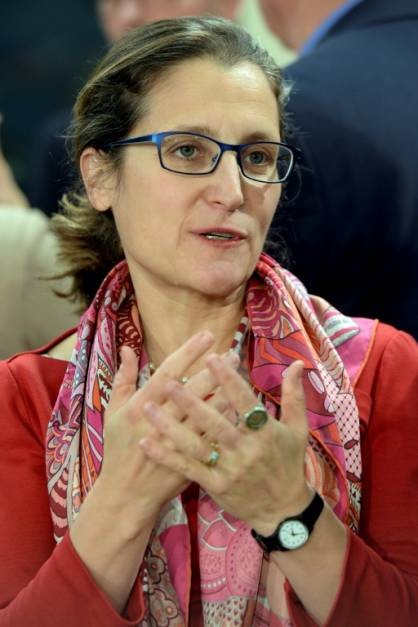 | La ministre canadienne des Affaires étrangères, Chrystia Freeland, le 5 décembre à Bruxelles. |